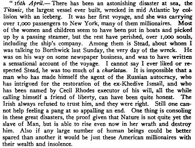 And finally, he is delighted that cruel uncaring nature is putting man in his place.