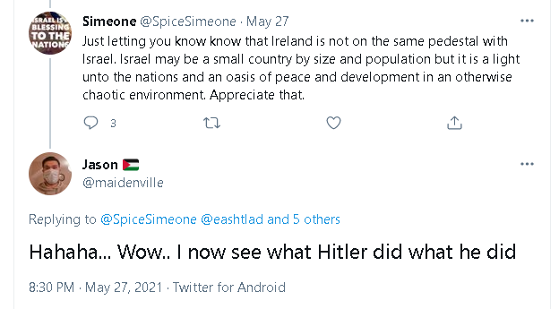 There's a perfect storm of bad thinking. It infects much of the Irish state, including many of our politicians. But what I want to say is, that what Ireland does mainly disgraces Ireland. Israel will survive, no matter what people in Ireland say.