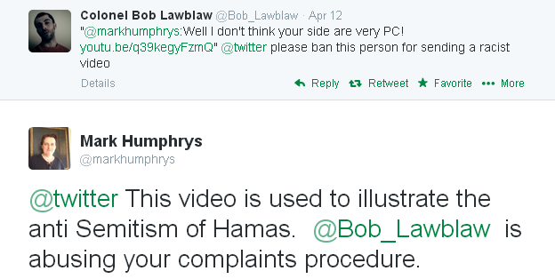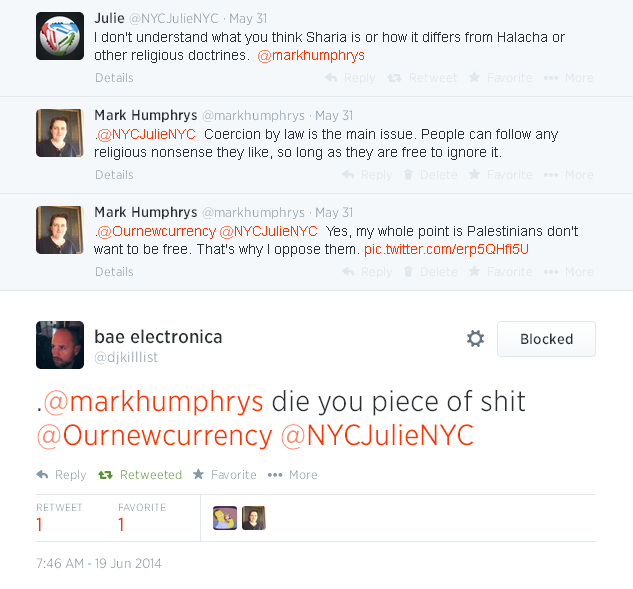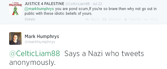 I am upset, 22 July 2014, when a Nazi who wants to exterminate the Jews says he doesn't like me.