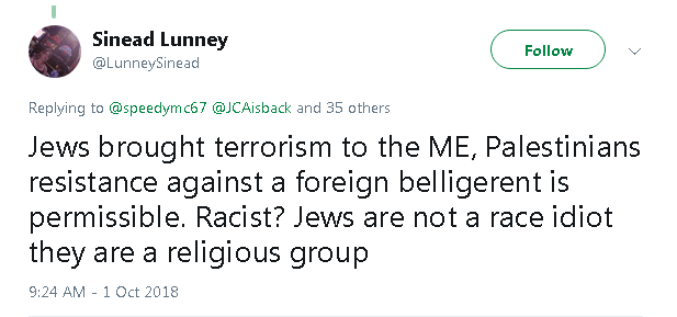 Irish Israel-hater called