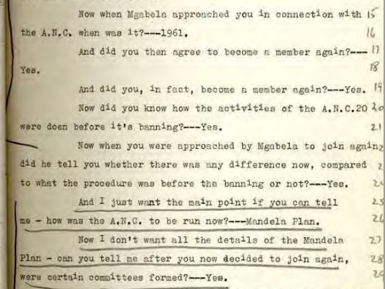 He describes joining the new ANC in 1961 to follow the new plan of violence, which he calls the "Mandela Plan".