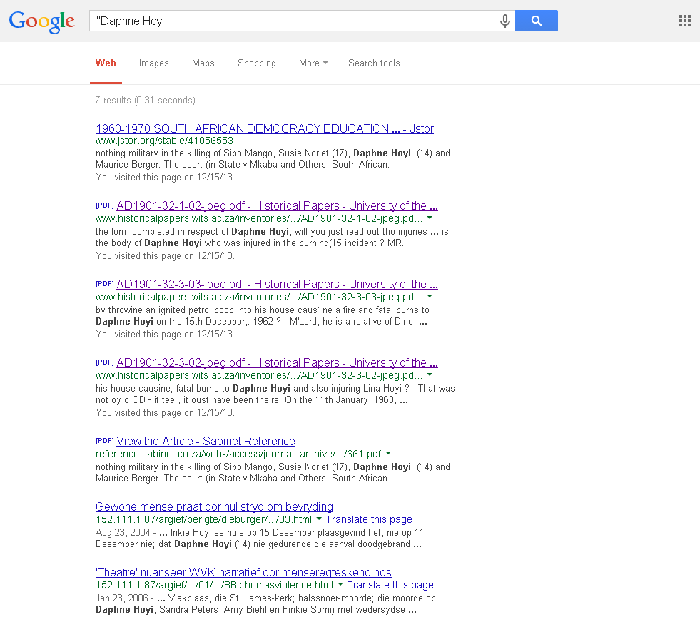 His niece, 14 year old Daphne Hoyi, was badly burnt and died a few days later.