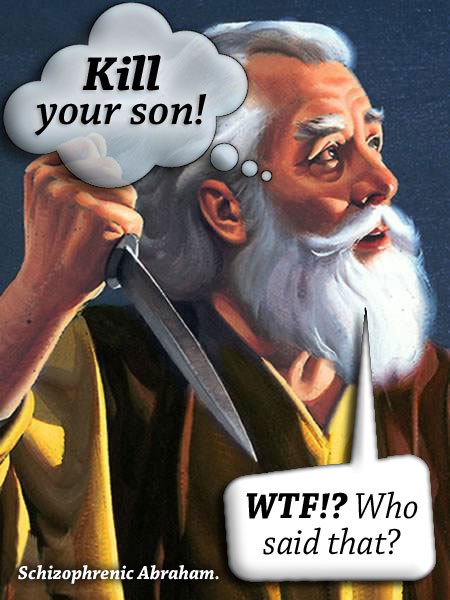 The Bible's Abraham suffered from schizophrenia: "If I ever hear "god's" voice in my head telling me to murder my son, I'm checking myself into a mental hospital."