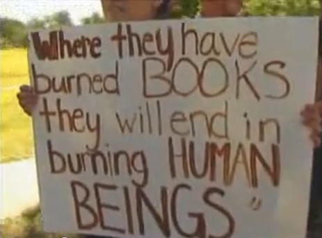 "IF YOU BURN THEIR BOOK, THEY WILL BURN HUMAN BEINGS"