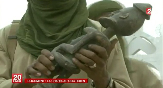 ISIS jihadi fighters in Syria destroying a 3,000 year-old Assyrian statue, May 2014.