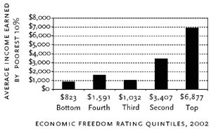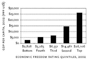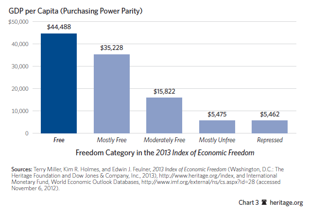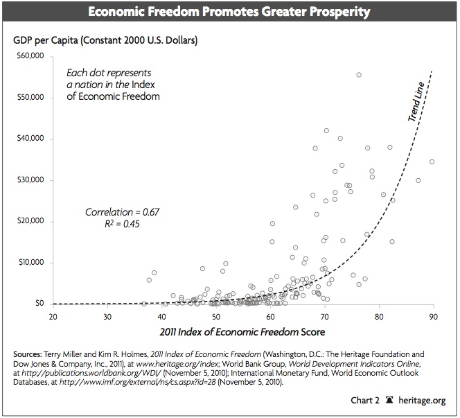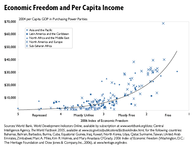 the freedom to trade by removing trade barriers and defending property rights and minimal regulation