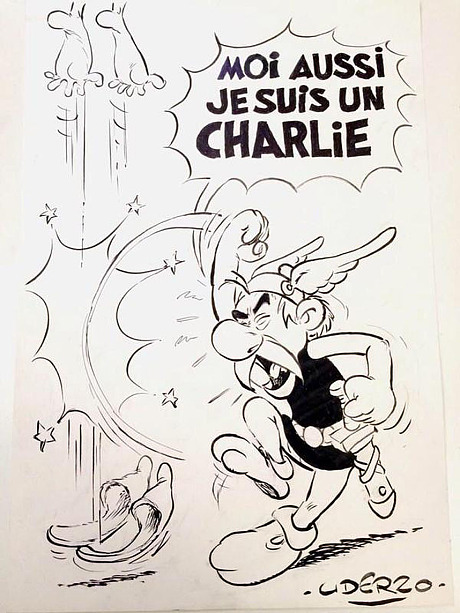 After this attack, Charlie Hebdo cartoons were displayed publicly in France (projected onto buildings).