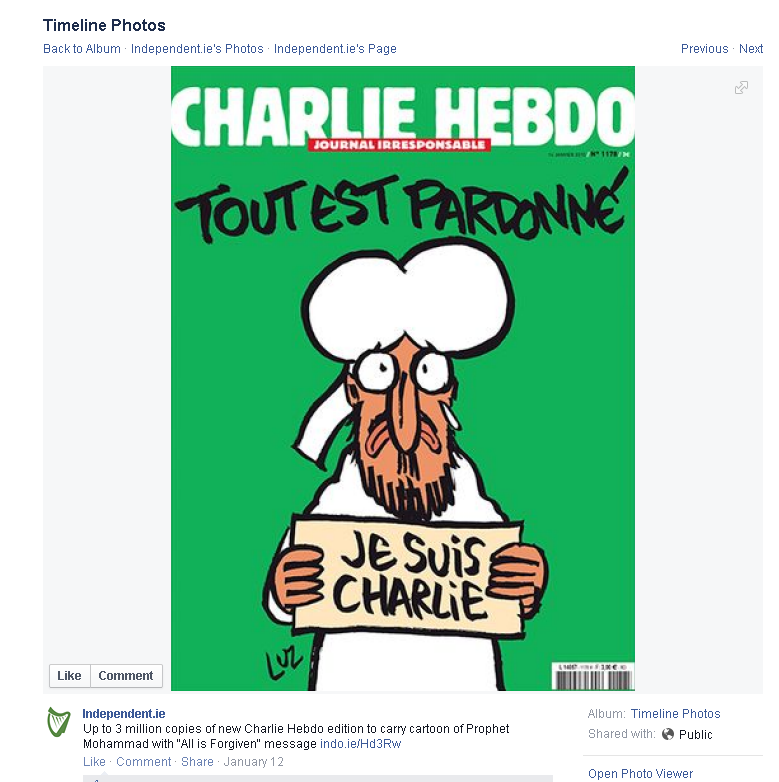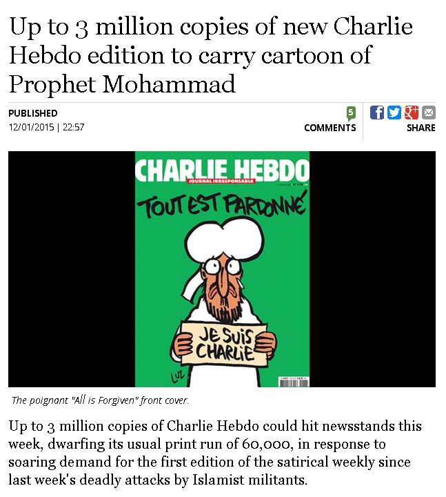 many normal media outlets around the world showed the Charlie Hebdo cartoons of Muhammad.