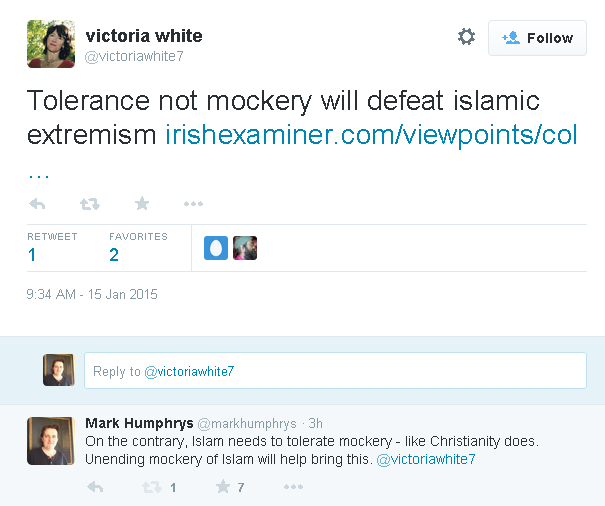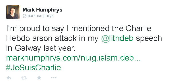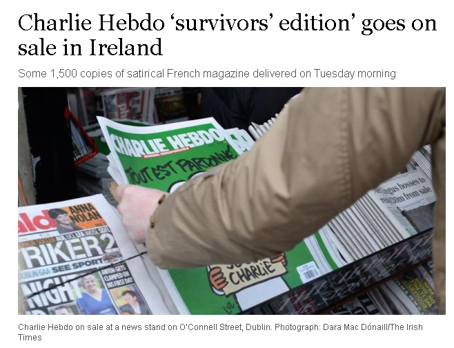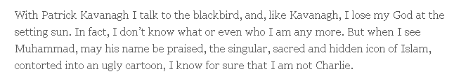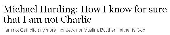 Michael Harding, Irish Times, 3 Feb 2015, bravely declares: "I am not Charlie".