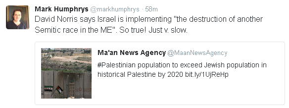 And yet Norris endlessly attacks Israel, and uses offensive "Nazi" language about it.