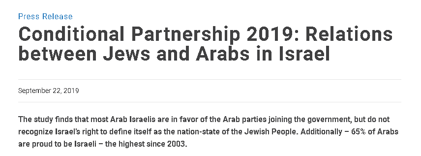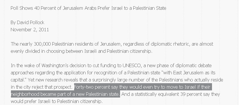 Well not really. I mean, look at this poll. 65 percent of Israeli Arabs are proud to be Israeli. So you know, again, how many people around the world would be absolutely shocked by that poll? It's not 65% of Israeli Arabs want to destroy Israel or something. It's 65% are proud to be what, to be Israeli. Even the word "Palestinian" is viewed as an insult by many of the Arab population of Israel. They say: "No, I'm an Israeli Arab. I'm proud of this country that I was born in and has given me opportunities and that I love."