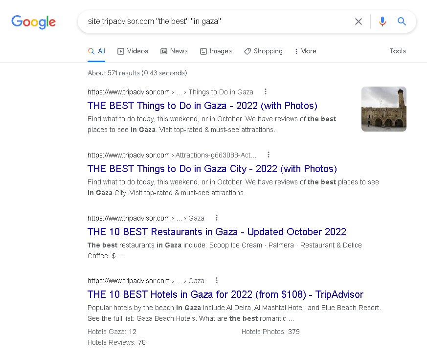 Now let's go on TripAdvisor and find the best things to do in Gaza. You literally can. And you can look at the best restaurants, the best hotels.
