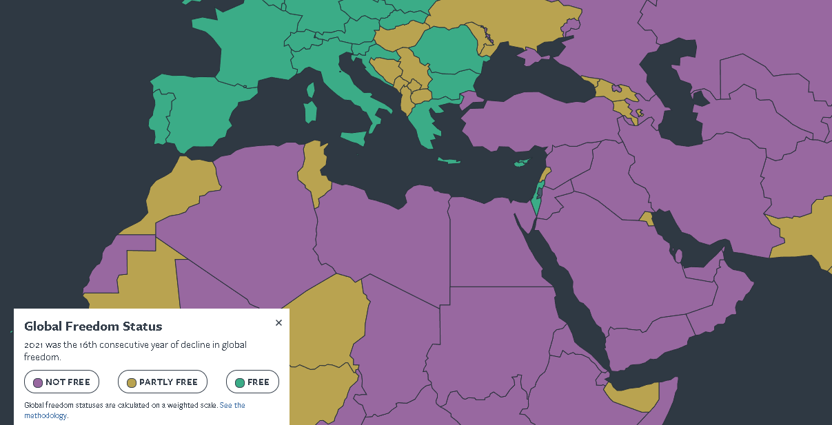 So Israel has done an amazing job. And here's a little map from Freedom House again: