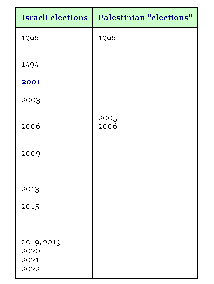 So here we have Israeli elections. This is a list of Israeli elections since the setting up of the PA. And as you can see here, in 1996 the PA had their first election.