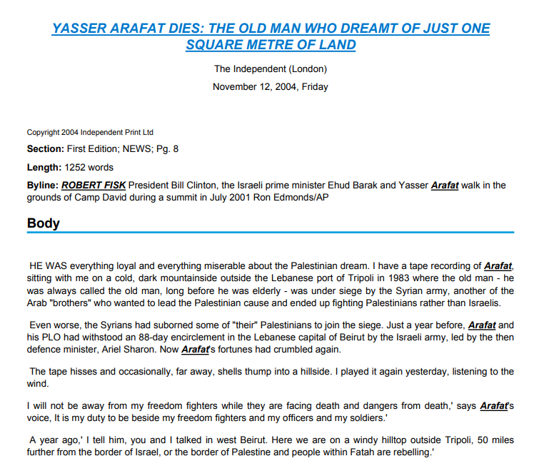 Fisk on Sharon v. Fisk on Arafat