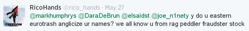 by anti-semite and Holocaust denier "rico_hands", who Frank follows.