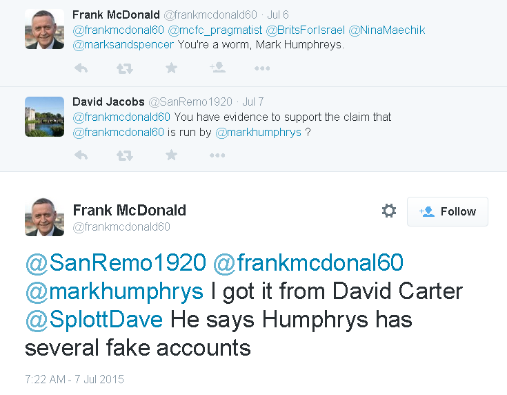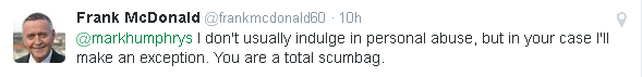 I want to apologise to McDonald for attributing the words of the troll to him.