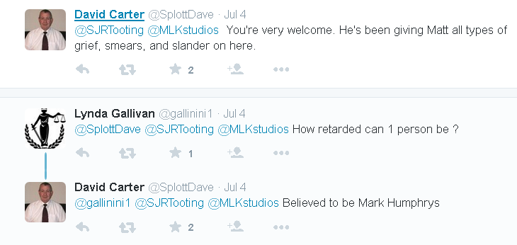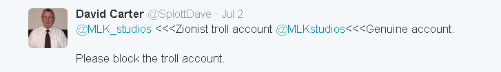 Above I was accused by Holocaust denier David Carter of impersonating his friend