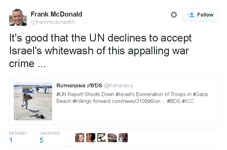 on the Times of Israel site about McDonald, 12 Jan 2014.
