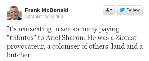His fanatic hatred of Israel, which sells so well in Ireland,