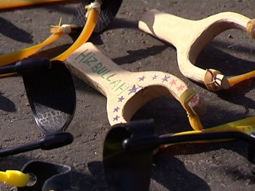 metal rods, slingshots, knives, smoke torches, wrenches, electric saws, gas masks, and molotov cocktails.
