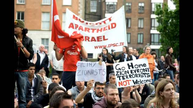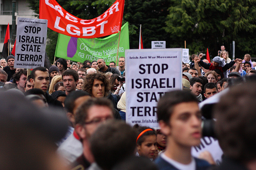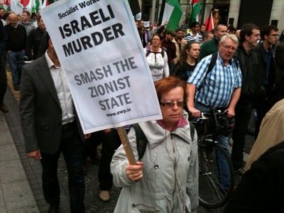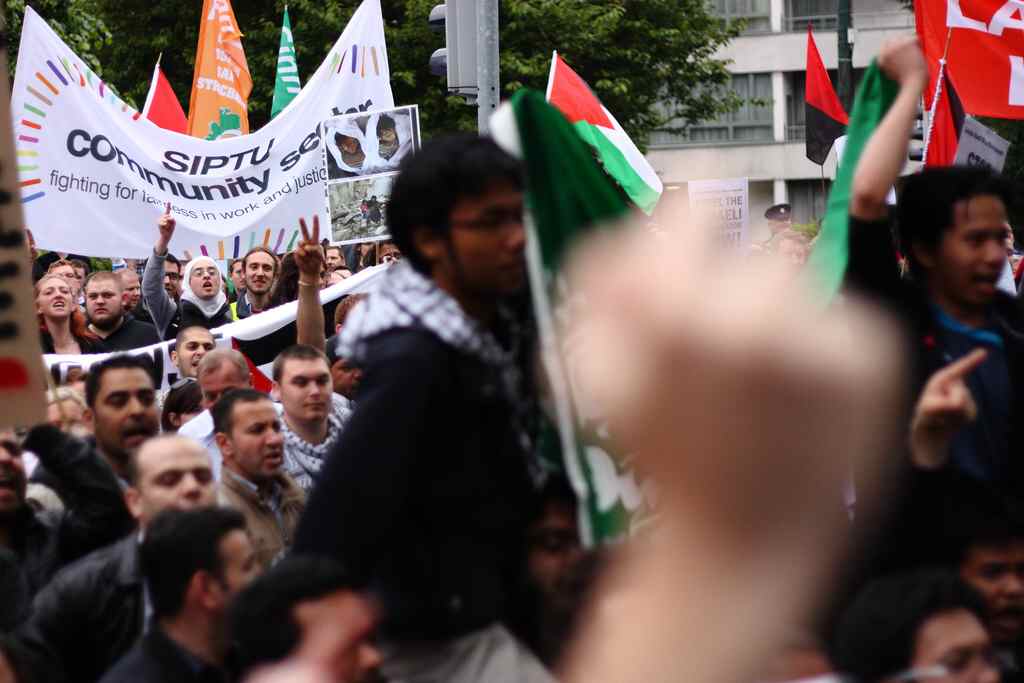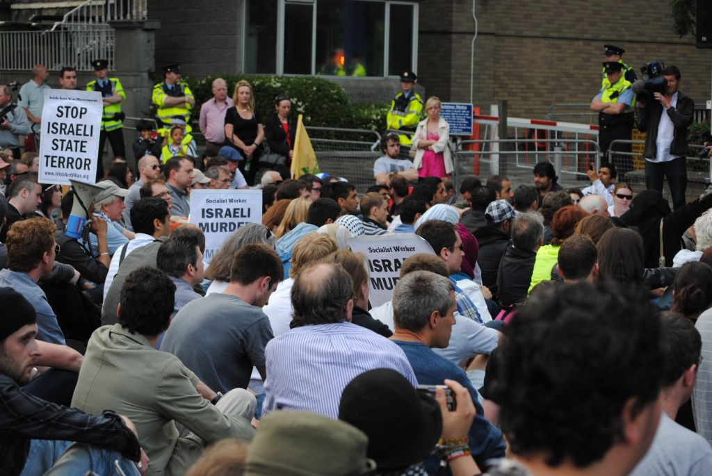 says a SWP protester at a demo in Dublin protesting the flotilla raid, 31 May 2010.