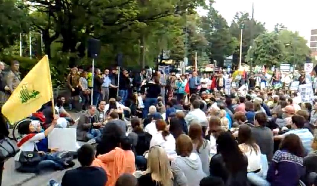 Hezbollah flag at anti-Israel demo, Dublin, 5 June 2010.