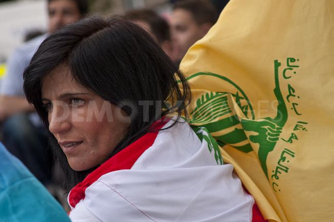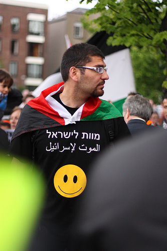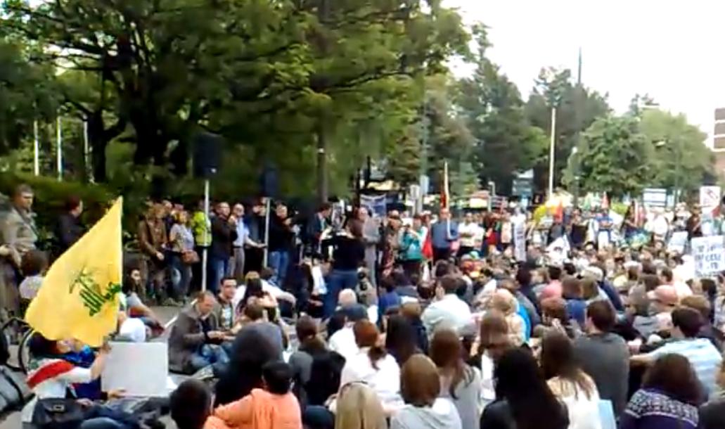 Hezbollah flag at anti-Israel demo, Dublin, 3 June 2010.