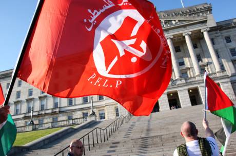 PFLP Islamic terrorist flag at protest at Stormont, June 2010.