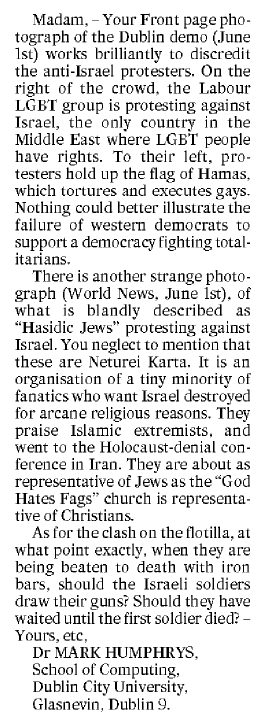 A rush to judgment that will be refuted by history and fact, Zion Evrony (Israeli Ambassador to Ireland), Irish Times, June 11, 2010.