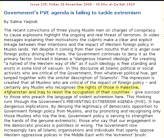 in England in which I support the Iraqi resistance and the Palestinian resistance