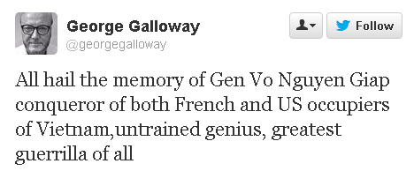 George Galloway reacted to the death of the North Vietnamese communist General Giap, 5 Oct 2013: