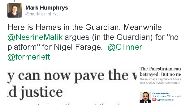 Surely lefties could at least agree that Hamas is worse than Farage?