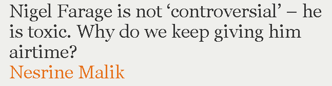 in the Guardian on 11 Dec 2016, complaining that the media gives a platform to Nigel Farage.