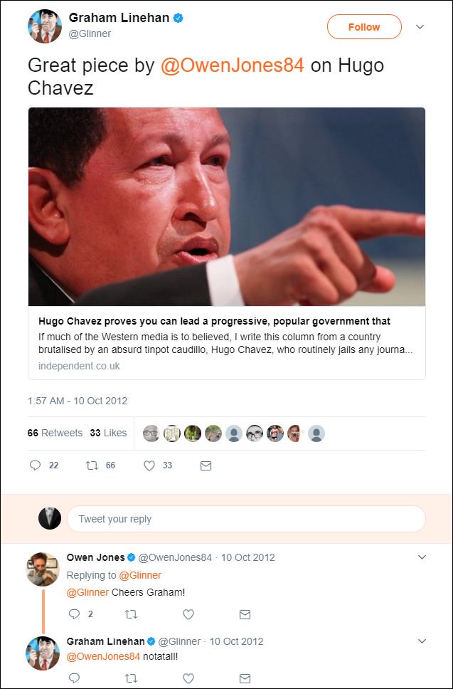 Graham Linehan in 2012 promotes Hugo Chavez,
