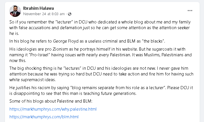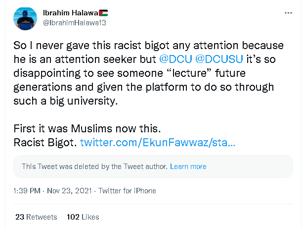 Ibrahim Halawa libels me on Twitter, 23 Nov 2021.