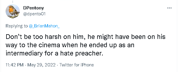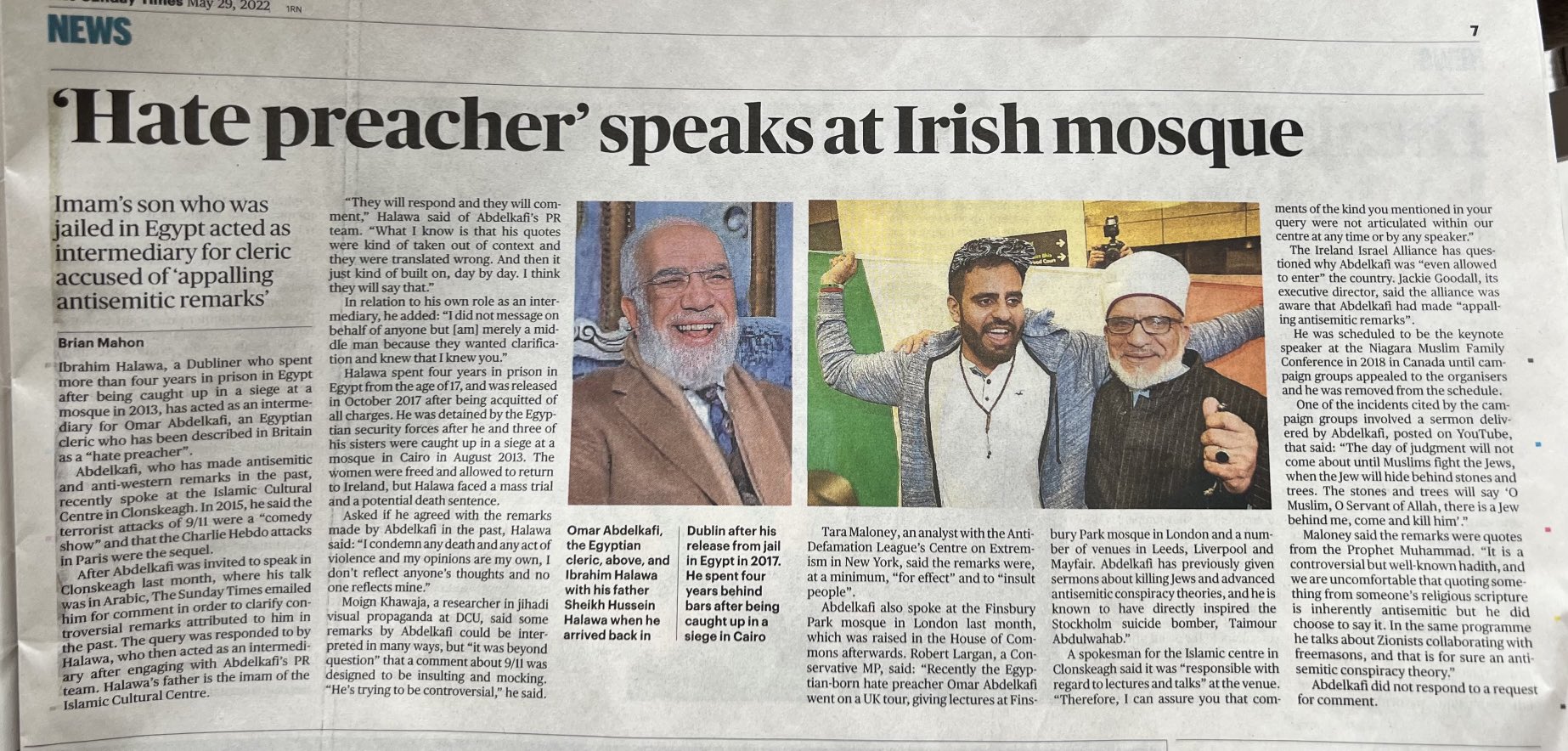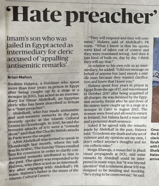 Ibrahim Halawa emerged again in May 2022, this time as an intermediary for a racist hate preacher.