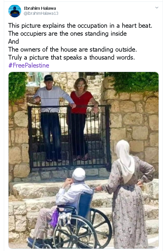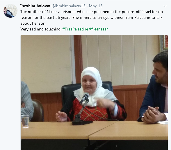 Ibrahim on 13 May 2018 posts about a woman whose son has spent 26 years in Israeli prisons "for no reason".