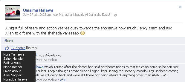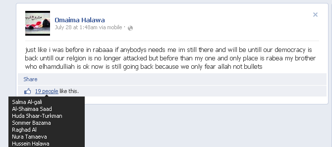 The Halawas take part in the Muslim Brotherhood protests, June to Aug 2013.