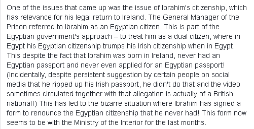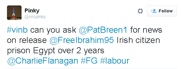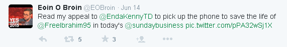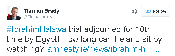 has actually called for Ibrahim Halawa to be given the