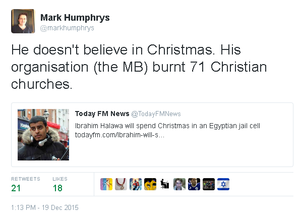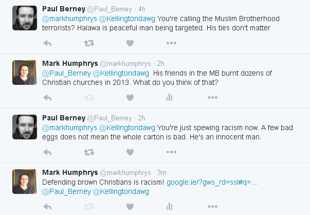 defends the MB, and says that complaining about the persecution of brown Christians is racist!