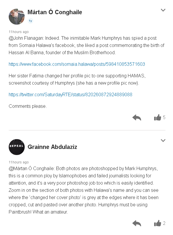 People on The Journal claim "Grainne" is a fake account, a pro-Islamist male troll.