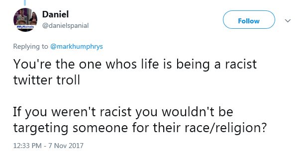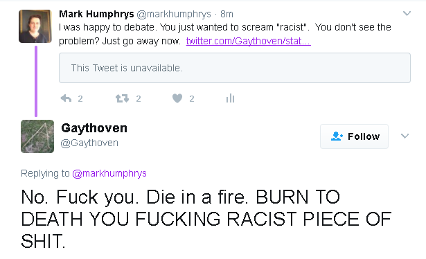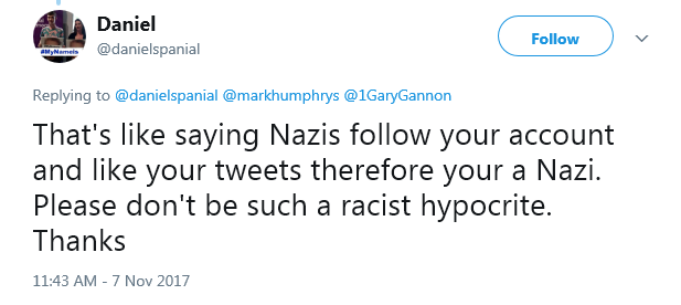 Having called me a racist, he then blocks me!