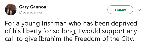 Gary Gannon, Sept 2017, calls for Ibrahim Halawa to be given the Freedom of Dublin.