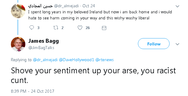 "raging moron .. sad, bigoted .. dumb cunt"