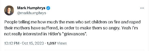 It's like being interested in Hitler's "grievances".
