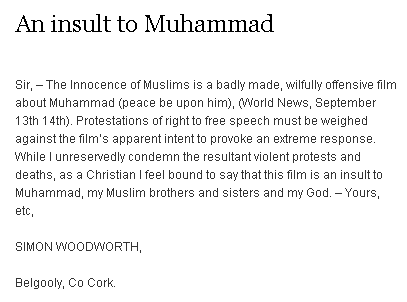 "it's obvious to all that if this film were about Christianity you wouldn't be advocating censorship."