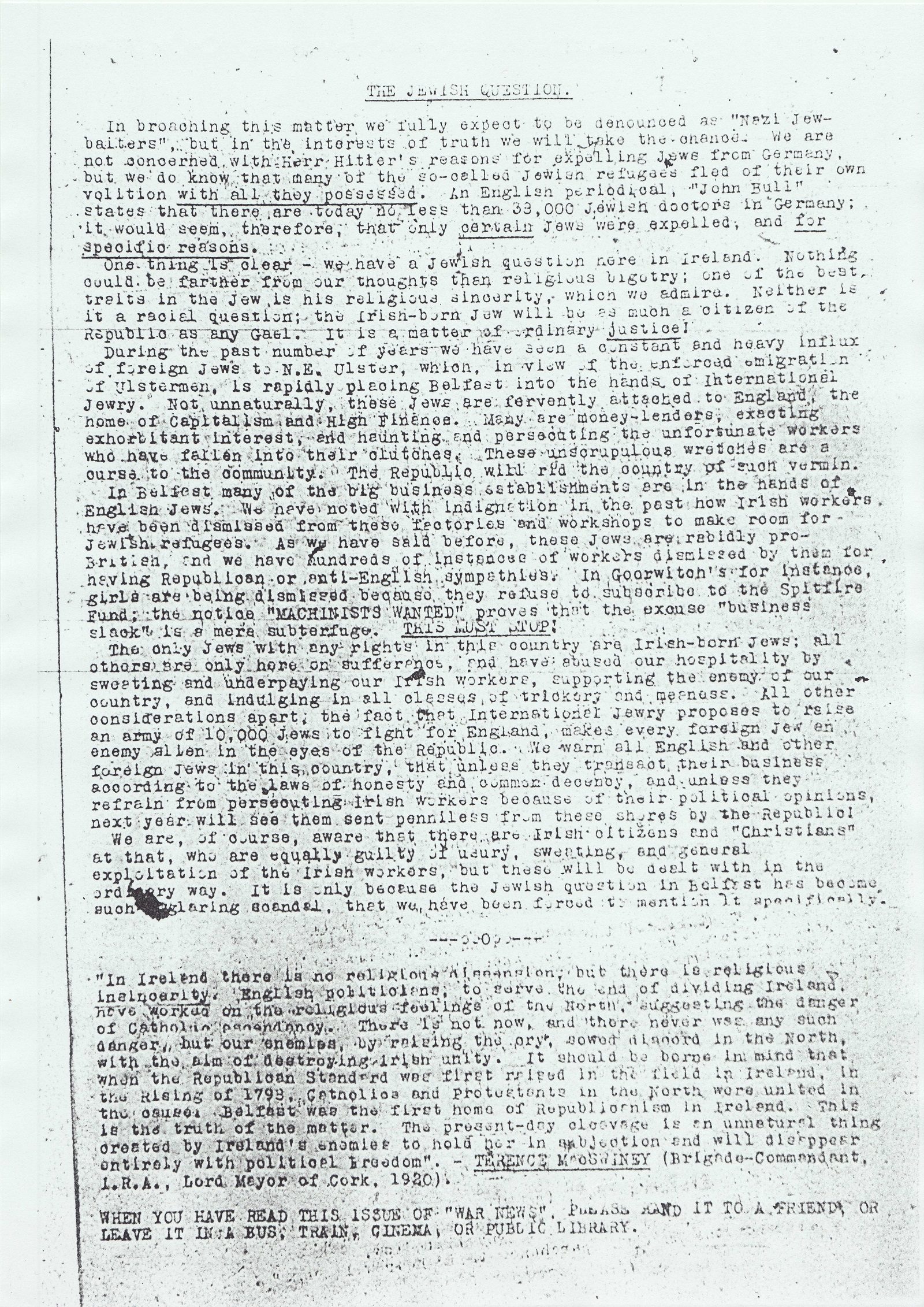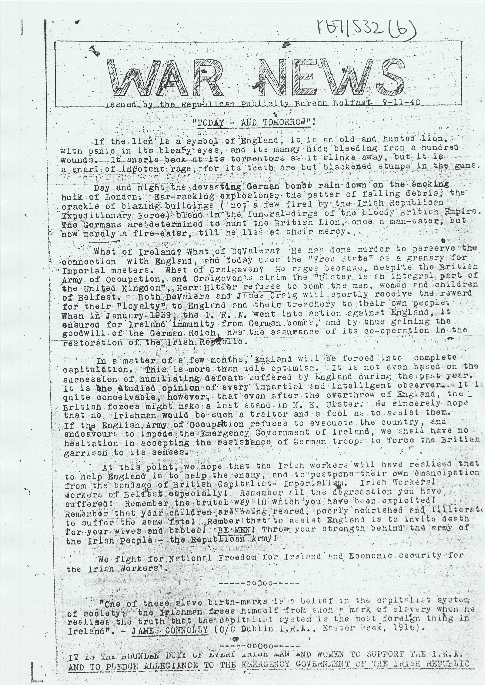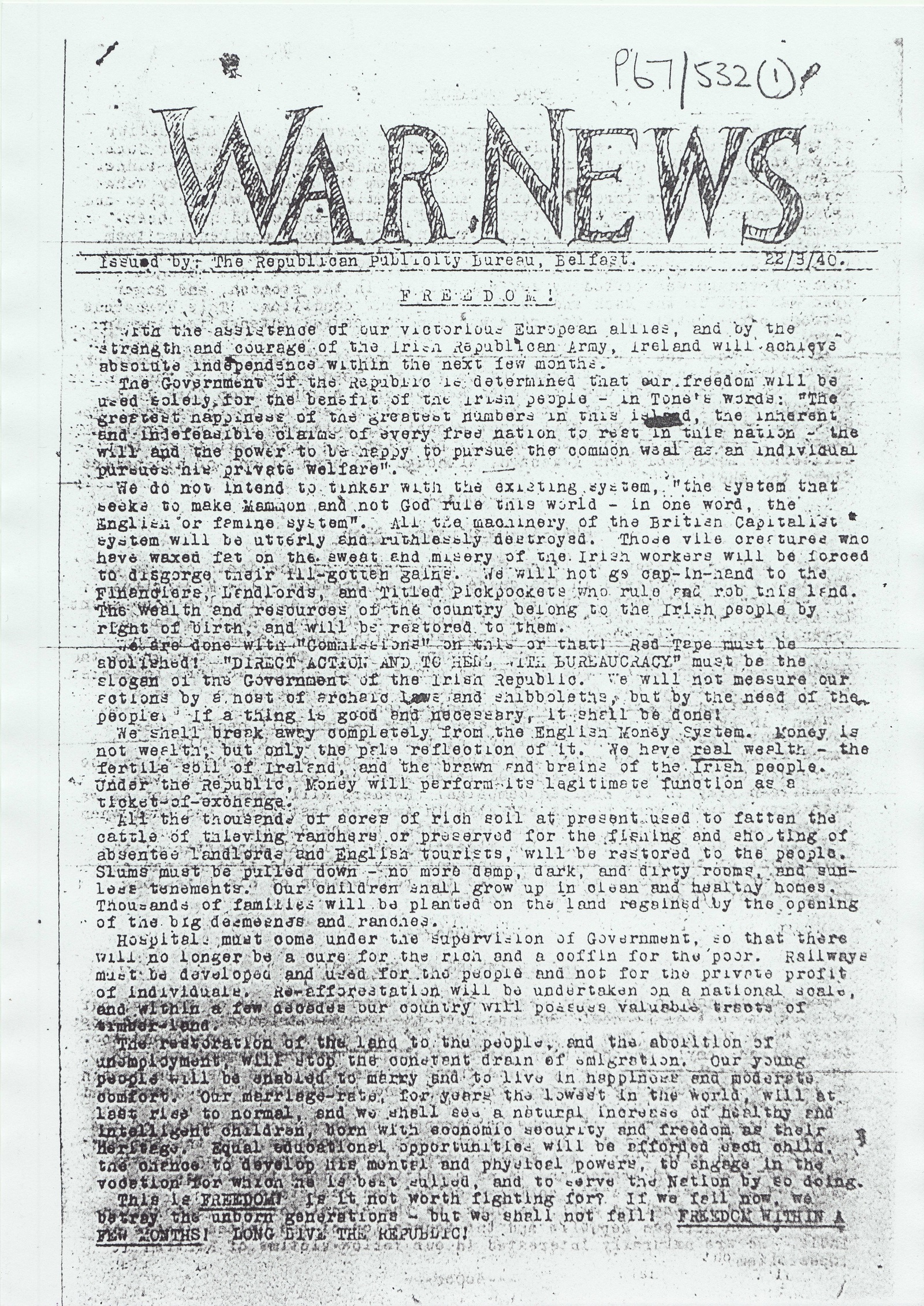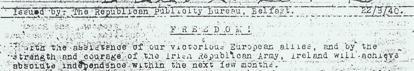 The IRA threatens death to anyone who aids the fight against the Nazis.