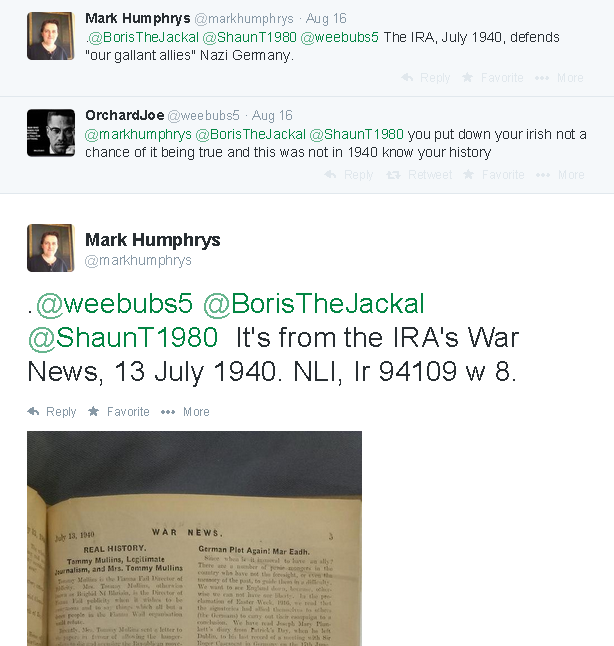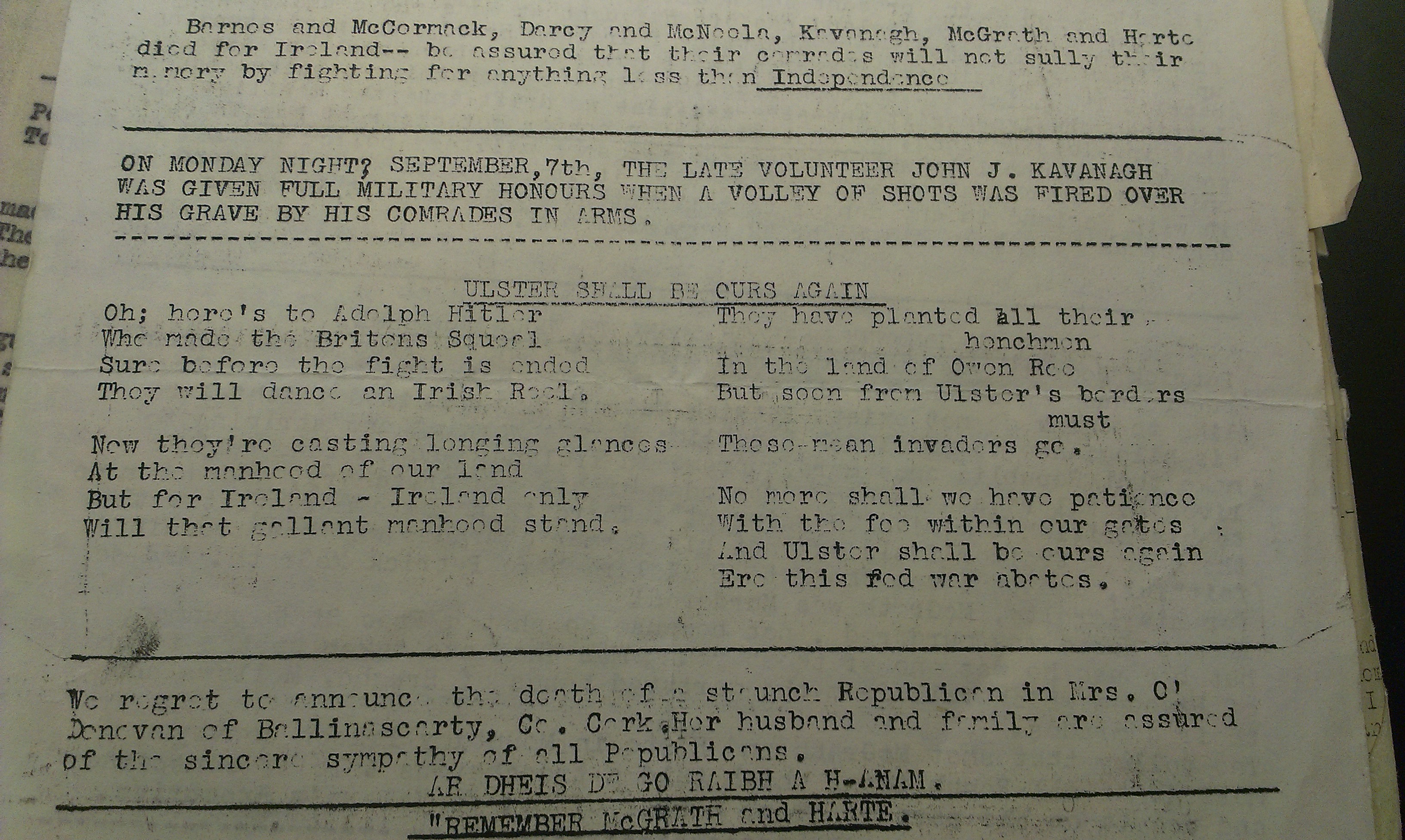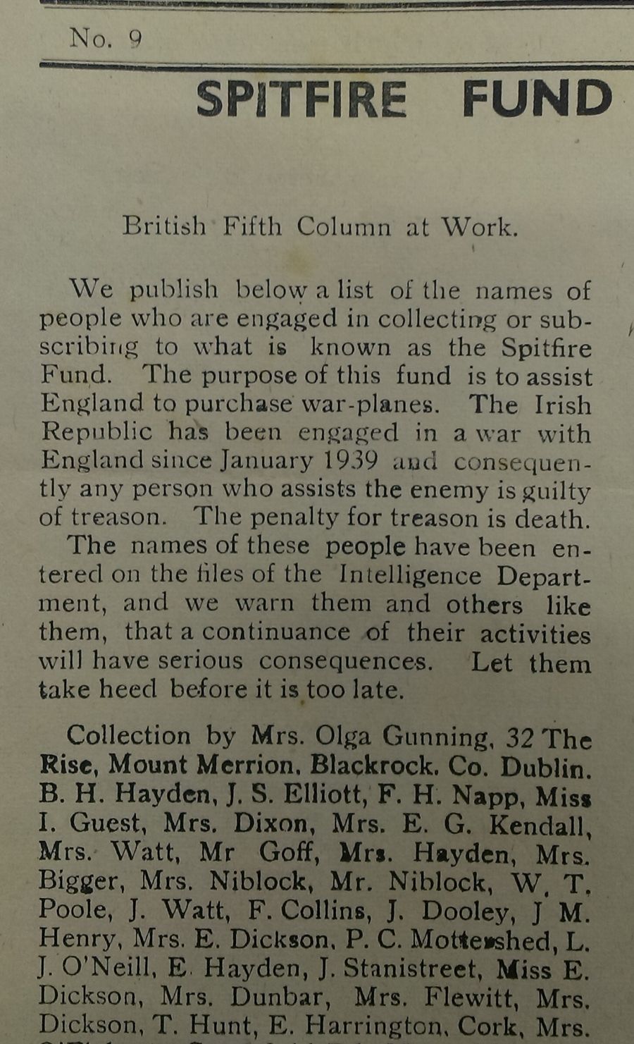 The IRA threatens death to anyone who aids the fight against the Nazis.