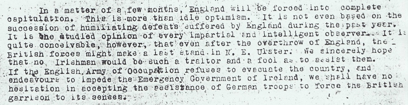 The IRA says that if mainland Britain falls to a Nazi invasion,